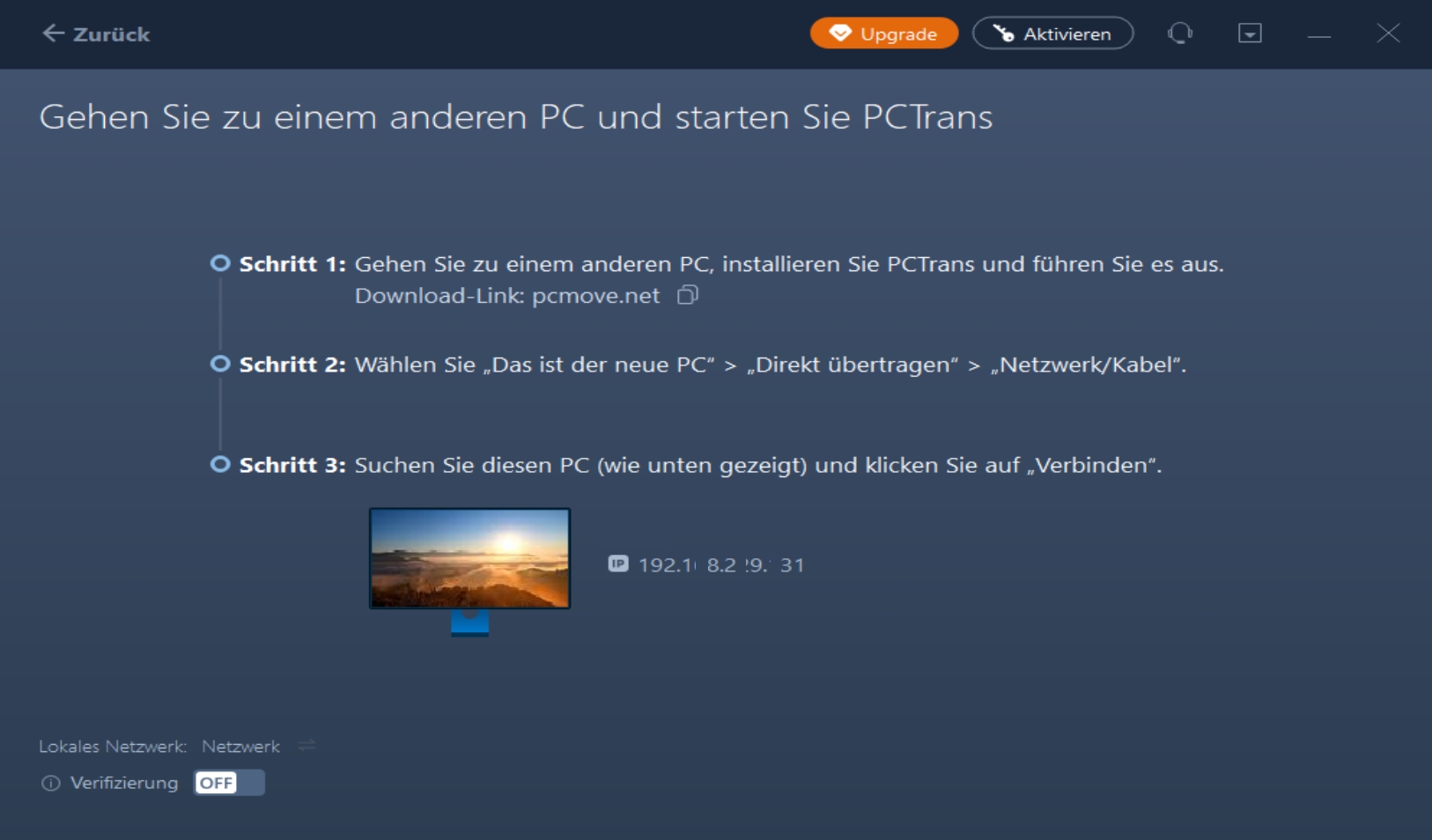 Direkter PC-zu-PC-Transfer von Programmen, Dateien und Benutzerkonten